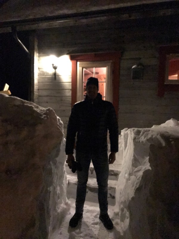 Magnus är uppe i Storhogna och åker skidor med kompisar den här helgen. Gissa vad de möttes av när de kom fram... ...en hel vägg med snö framför dörren😱!! Jag kan tänka mig att det tog en stund att skotta fram gången☺️ Snö upp till axlarna, jo jag tackar jag😁👍